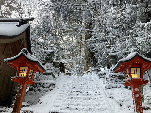 令和八年一月二日 朝起きると窓外の家々の屋根が白くなっていた。 庭は薄っすらと積もっていたが道路は積もっていなかった。 年末から帰ってきた娘と家内の三人で英彦山に行こうとなり、 まずは自宅近くの天疫神社へ参拝し、英彦山へと向かった。 添田公民館を曲がると景色は一変し、一面銀世界となった。 豊前坊駐車場は20cmほどの積雪。 参道から社殿へ向かうと参拝客も疎らに。 厳かな空気漂う中三人並んで柏手を打ち、今年一年の 山眠る万の命を懐に 雪霏霏と積み石だけの行者墓 |